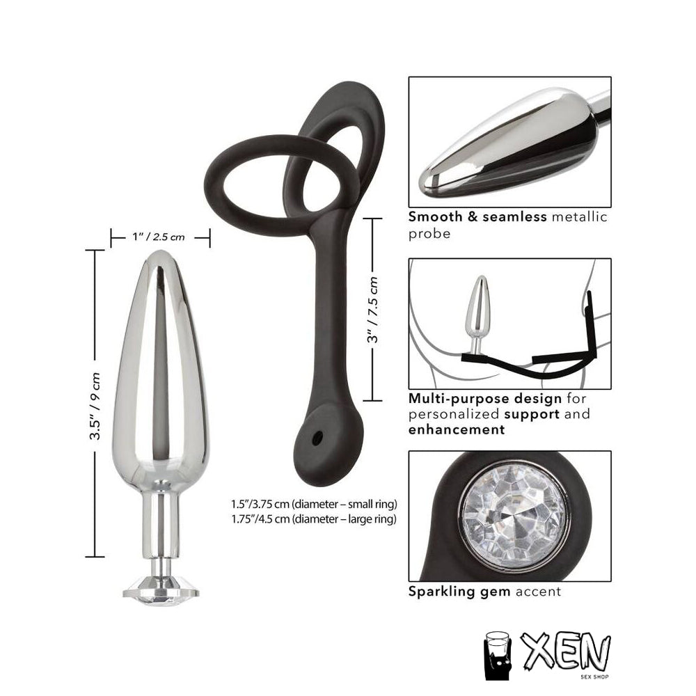 Sumérgete en un universo de placer personalizado con el Star Fucker Slim Plug. Un potenciador doble de silicona elástica se combina con una sonda metálica elegante y sin costuras para ofrecer un soporte versátil, estimulación e incluso un juego de temperatura tentador. El flexible potenciador doble de silicona fue creado para aumentar la resistencia, mejorar la sensibilidad y brindar un soporte superior para la erección. Juega usando el potenciador doble y la sonda metálica juntos, y no olvides que se pueden desmontar para facilitar su limpieza. La sonda flexible está hecha de una aleación de aluminio suave y sin costuras que retiene el calor o el frío para una experiencia de juego de temperatura única. Mientras amplías tus horizontes con este elegante y delgado plug, usa la base adornada con gemas brillantes para una estimulación intensa, una inserción sin esfuerzo y una extracción suave. La vista es aún mejor desde atrás con la base de gemas brillantes.