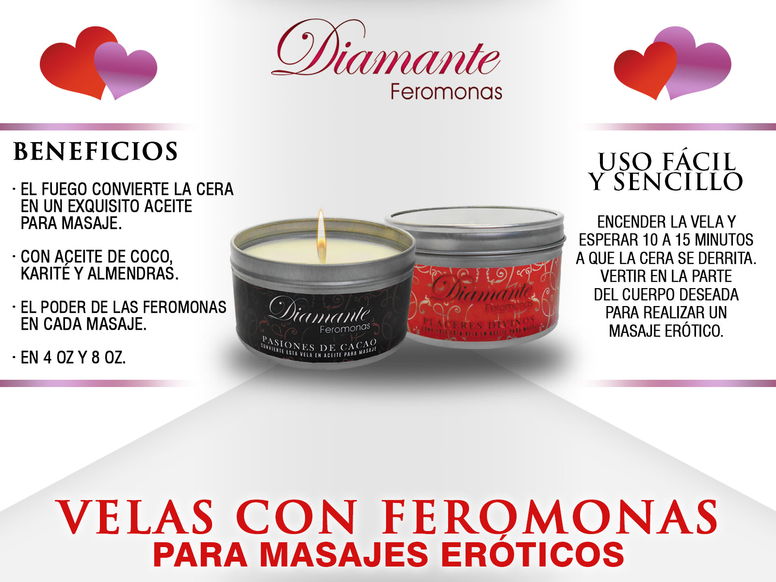 - Velas con Feromonas que se convierten en aceite para Masajes Eróticos.